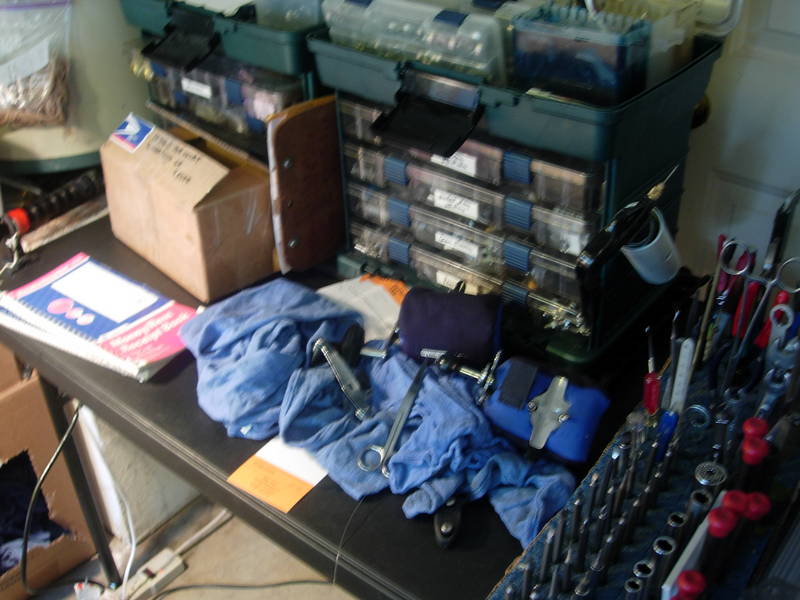 ok, two tackle boxes of reel parts, three fliptop boxes of line, kolekar handle parts, tools and tackle.