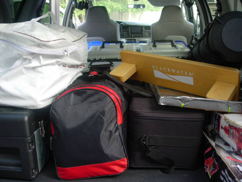 a bag of belts for three, my personal duffle, reels, and the rod tube.