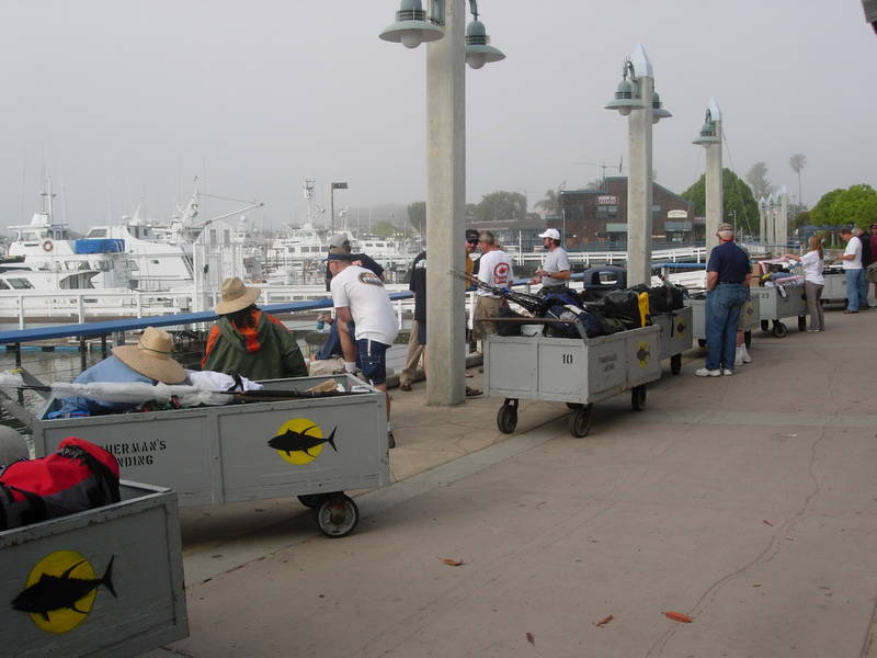 we loaded all of our gear into hand trucks and waited on the sidewalk behind fisherman's landing.