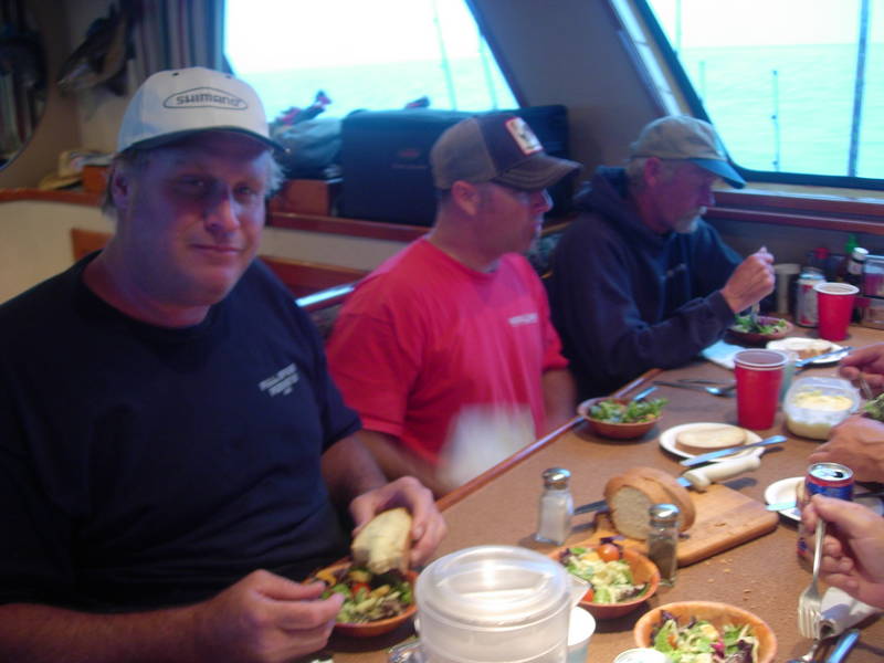 monday, june 23rd. we headed out to troll for albacore and bluefin. that would get us halfway home. we went the whole day without a bite. the most exciting thing all day was dinner!