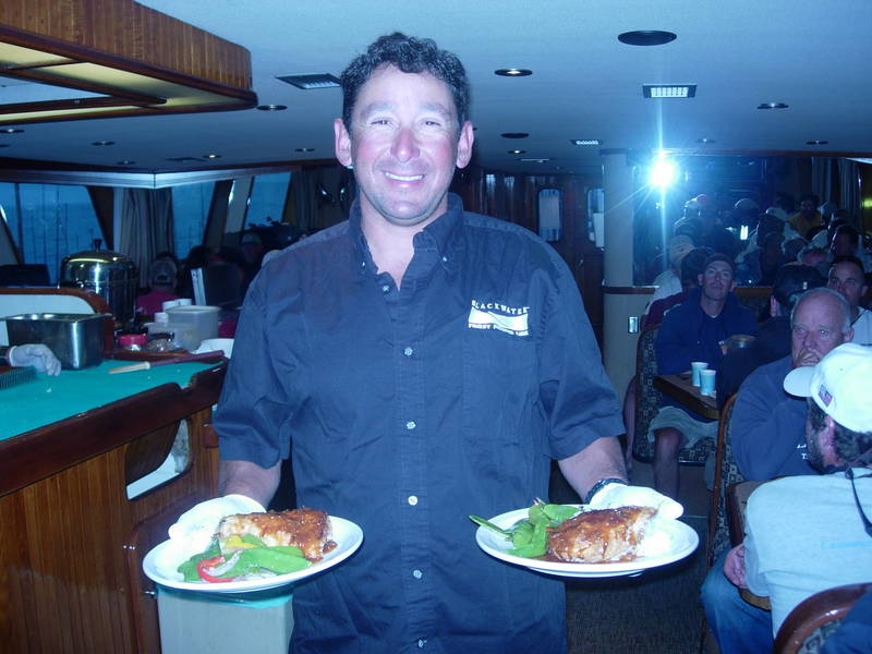 that first night, jay insisted on fishing. it was just a preview of things to come. if there was room on the rail, he was there. i think he was the most intense fisherman on the boat.
