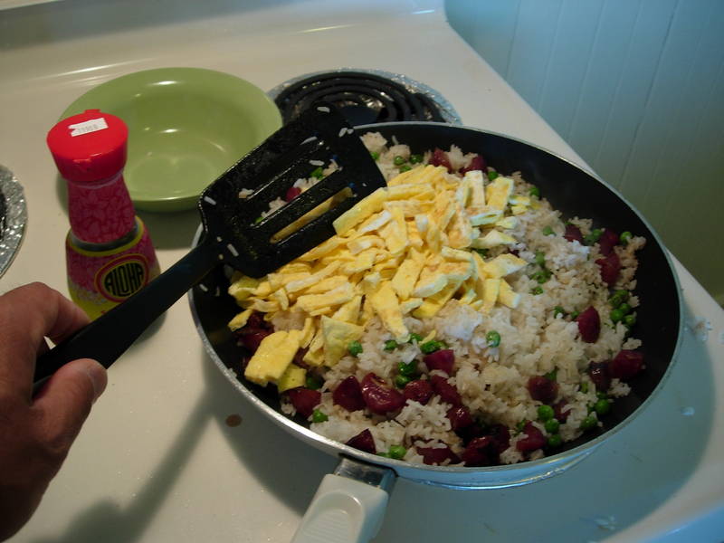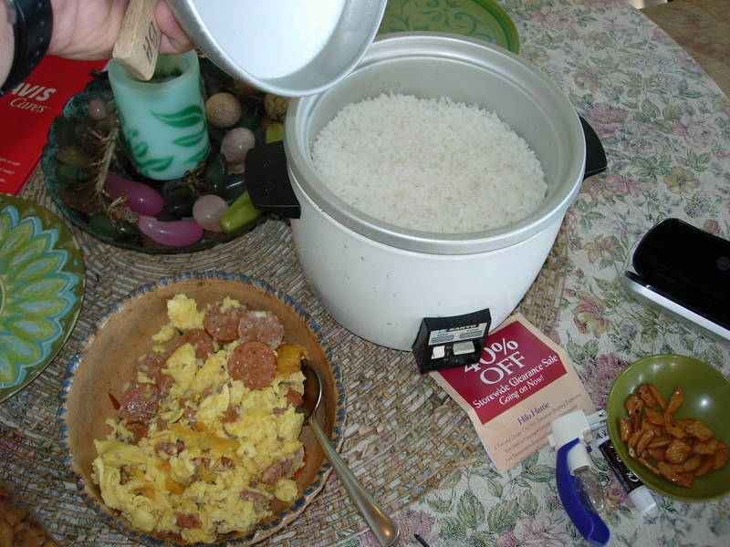 breakfast at the house was rice, portugese sausage and eggs (well, um, scrambled instead of over easy).