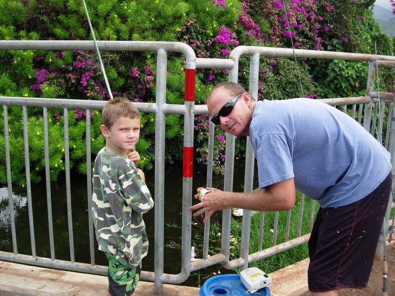 uggh!!!!!! finally home. what a trip. i got only one day on the water. it was at lake wilson for my first day of fresh water fishing in years. we started at a local canal just off waialua beach road, outside of haleiwa, to pick up live bait. our catch here was 30 little tilapia.