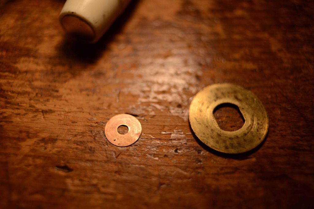 - When I compared the disassembled reel with the 14/0 schematic, I discovered there was 3 brass shims next to the left bearing..pushing the spool to the right .75mm (the washers are .25mm thick each. Its the little washer I placed next to a standard size drag washer for visual comparison)