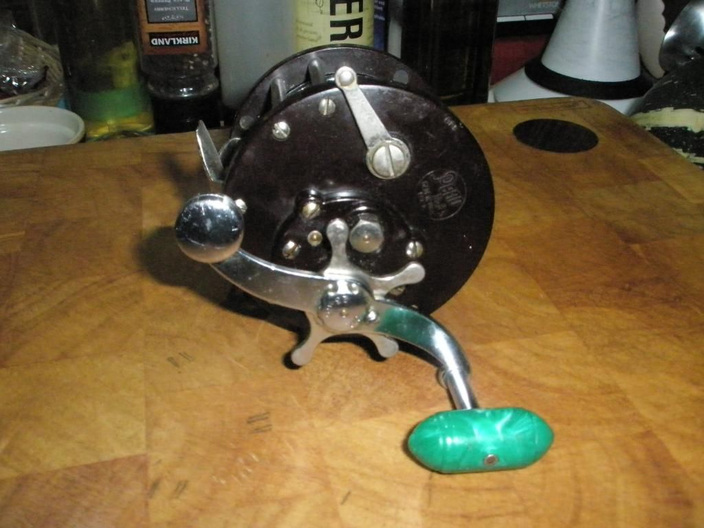 This is an old Penn 85 I had with broken parts. Many thanks to Fred for sending me a correct spool, handle nut, and left side plate. It's now "new" again.