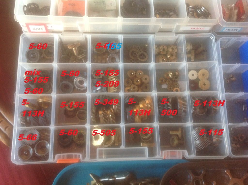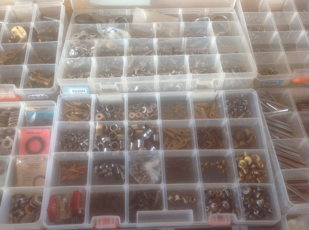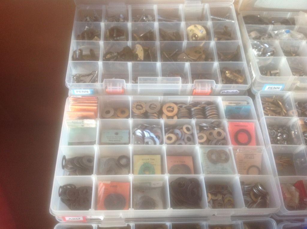The larger parts for Penns are all in numbered bins -- such as rings, stands, sideplates, handles, spools, etc.