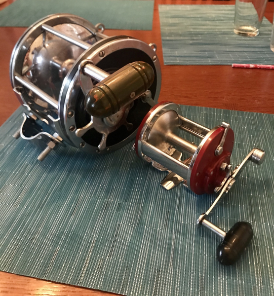 Yup John emptied quite a few 🍻🍻🍻. Mo you're correct lots of dried up WD-40, grease and fish parts....my buddy is fishing off Catalina Island right now on his 55' trawler/live aboard with two 114H's and a TLD25 I just serviced for him.....he needed them asap (isn't that always the case?!?)   One of the 114's needs a drag stack and gear sleeve but fishable in its present state.  This 500s will be going back to him on Monday......looking to trade some reel repair for a cruise on the trawler 😉😉. It looked like this reel was engraved with H&M but upon closer inspection has the initials "MGM" and "1967" on the side plate and "MGM" on the stand.....shame was thinking of trading him for a regular 500......Bill