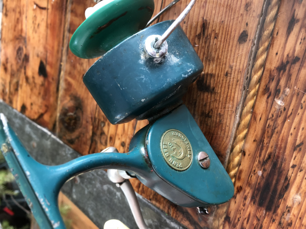 Mr. Boshoff used a Penn 49 to fish from the rocks but he needed a reel that had more line capacity but was still light enough to cast and fast enough to retrieve spinner baits at speeds that would attract a tuna. The Penn 49 was light for a reel of its size, was fitted with a large, lightweight Bakelite spool and had a retrieve ratio of 3.5 to 1. It was the perfect candidate for the Rooikrantz fishing except more line capacity was needed for the super strong Yellowfins. Louis Boshoff used the standard Penn 49 as the base to create three reels, one for himself, one for his brother and one spare. He made the reels by removing the crossbars and stand from a normal Penn 49 and replacing it with a stand and cross bars from a Penn 500 which created a wider reel. He then took the shaft of the Penn 500 spool and placed that shaft in the plastic spool of a Penn 49 after splitting the Penn 49 spool and making a spacer to make up the extra width needed to make the spool fit the new, wide Penn 49.