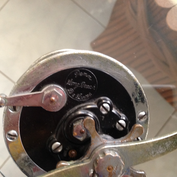 A Long Beach 65 "De Luxe", seller says: "1938, 300yd. Reel". This's a "keep it as is" reel for me with alla chrome loss. Nice heavy Penn. It has an odd(to me) screw pattern on the rings: 6 screw stand, but only 1 screw shows on each outside ring. Also, 6 posts, but the 2 bottom-most posts have no screws showing on either outside ring?!? Can't wait to open 'er up and go through everything and see what's up!