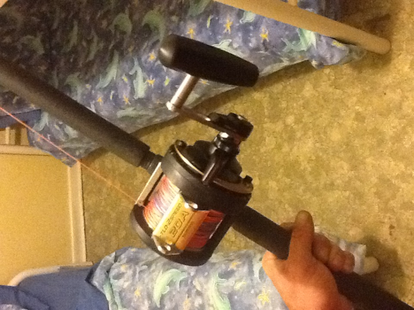 That's the 2m Bronze Whaler we nearly got. And on my lighted rod with the Shimano TR 2000 reel! The new handle is awesome😃