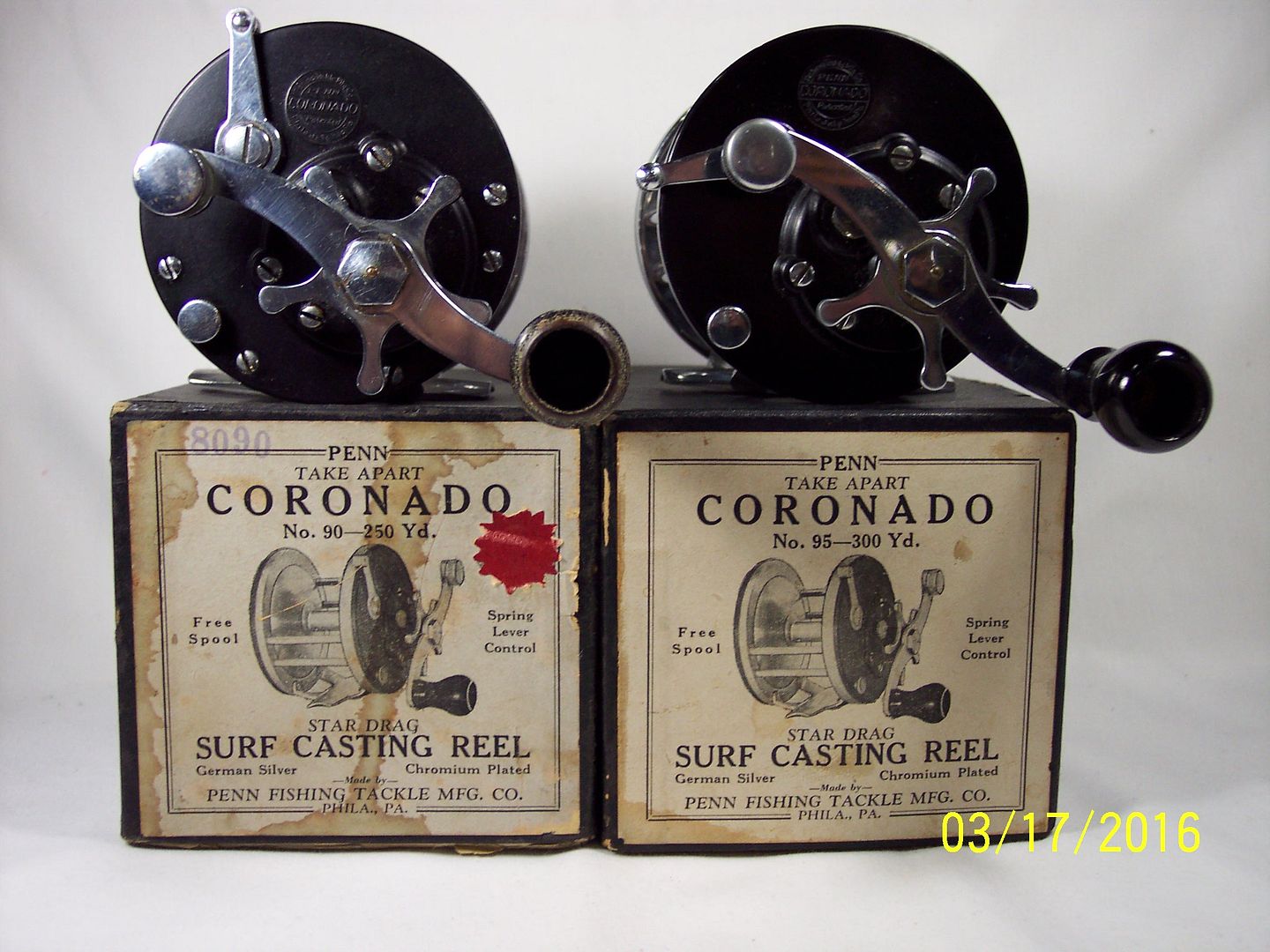 Maybe you can help me out. I'm trying to fine some information on early Penn boxes. If you have or have seen boxes (other than my site) for a Bridge City, Coronado or New Port with solid color labels, like the ones in the photos, PLEASE let me know. Also if you have any other Penn reels in solid color label boxes that came with the 1934 paper work, like the 1934 Long Beach shown in the photo.
