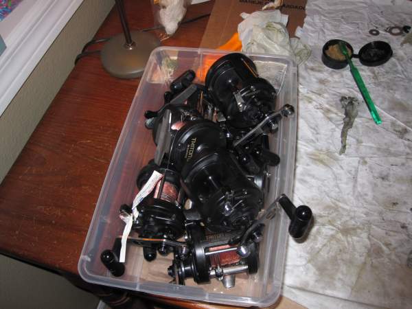 All eight rebuilt. The tagged reel had a tight crank shaft ball bearing. I freed it up but will order a replacement. I will probably order replacement drag springs for all the reels at the same time and replace the springs the next time I open them up.