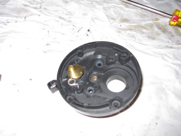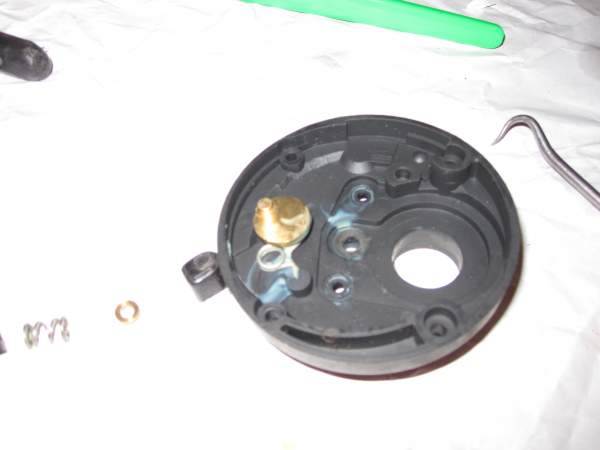 Here is the crank side side plate. The spool tension spring and washer are to the left.