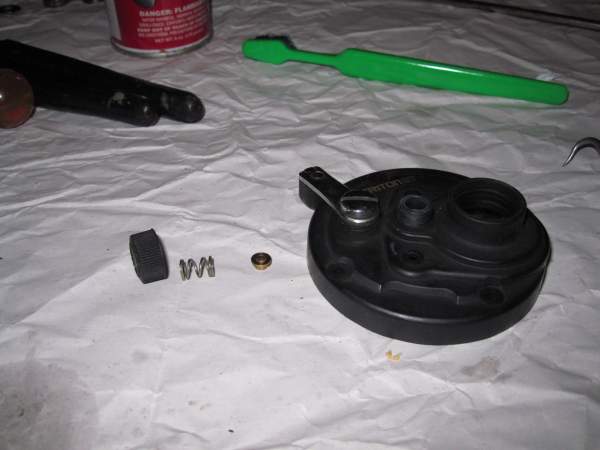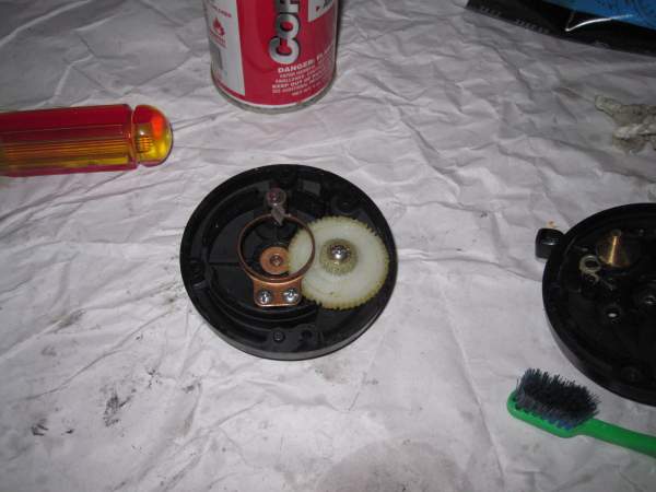 Then the rebuilt clicker side plate goes on (some 321 oil on the spool bushing).