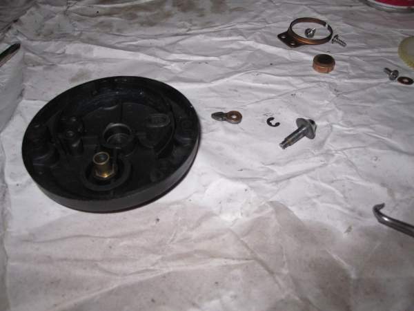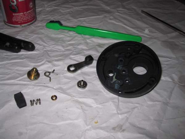 I rebuilt the side plates as I took them off so I minimized the loose parts on the table. I took the clicker side plates down including the clicker switch which is seen to the right of the side plate.