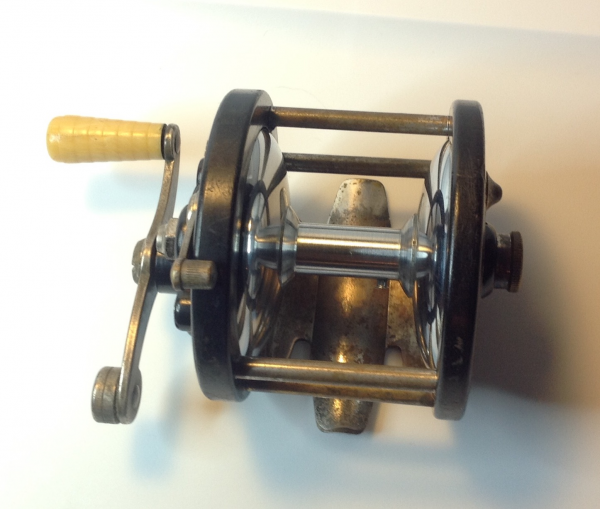 When it arrived, the first thing I noticed was that someone had painted all the external metal with metallic-like paint and the bakelite was painted black.  Maybe a kid did it.  That's what I would have done with an old second hand reel when I was a kid.
