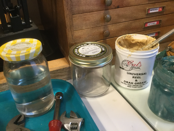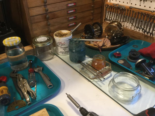 The bench I'll be using to maintain my reels is the same bench I use to fix computers, shortwave and CB radios (Yes, some of my friends still use them regardless the new technology). Once I'm done with the reels, I'll have to put the grease away and clean up the bench.