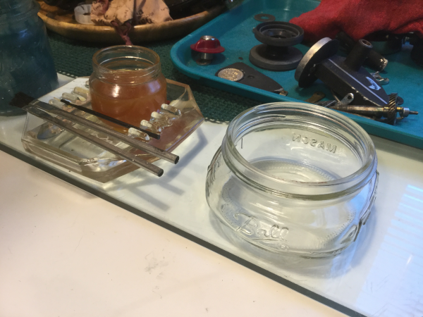 The Yamaha is about out for the month -- and I am going to switch over the container to the wide, flat Ball jar -- or the wide, flat sided bullion jar.