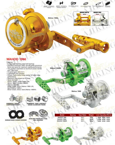The reel is an Ajiking Wahoo 1966 conventional .