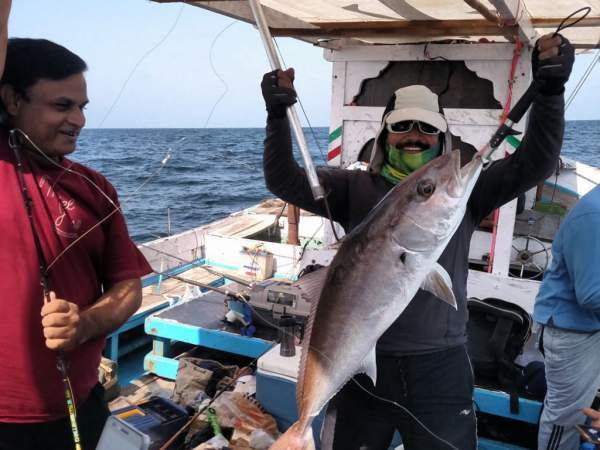 After a couple of casual inshore trolling trips in August and September, we decided to head offshore to an area known as Karamat. It is a span of water ranging from 150 to 250 feet deep about 22 nm SW of Karachi that has many underwater structures jutting up many feet from the seabed. These underwater structures are visited by large schools of fish of many species, but from September to November, large schools of amberjack draw many anglers, giving them a shot at vertical speed jigging, which happens to be one of my favorite forms of fishing.