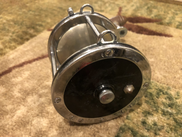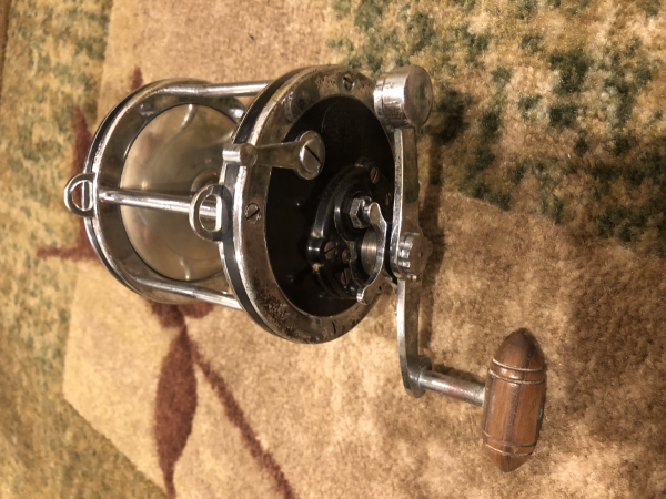 Martin I see what you mean about the wood knobs. I have another 4/0 with hex clicker. Not as nice as the one I posted earlier but like you said it has a smooth counterweight handle with wood knob, unplated spool, and external drags. These are the only two 4/0 Senators I've ever seen with hex clicker.