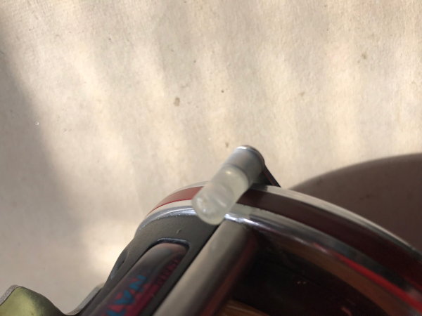 After hard plastic tube w epoxy install (can be done with out removing lever as well!)  rotate reel so the open end is upwards.  Swirl a tiny bit more epoxy in an ice cream cone fashion.  The end will be domed as it settles to set.