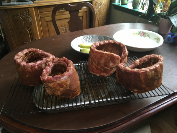 Out of the oven after steaming for 75 minutes at 325.  If I were to try to handle them right now, for one thing they'd burn the bejeezus out of my tender fingers.  And they'd also fall apart on me.  So we're gonna let them cool for at least 30 minutes.  I got till 6:00 to have them on the table ready to eat so times on my side.