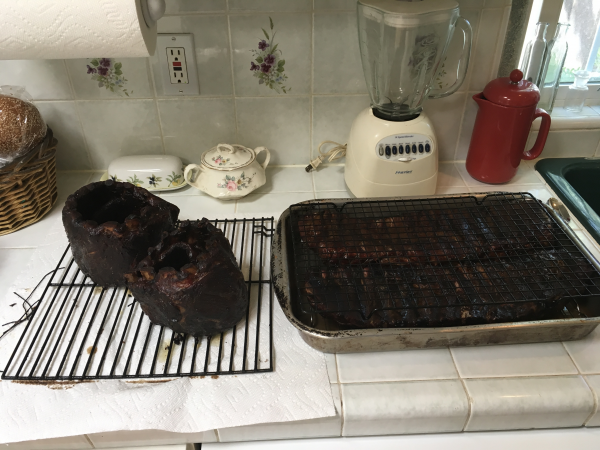 Fortunately someone showed up with a chocolate cake and saved the dinner!  Now we're all fat and happy.