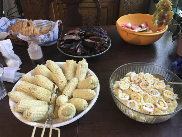 Wife is doing the sides, tater salad and yellow corn, and French bread.