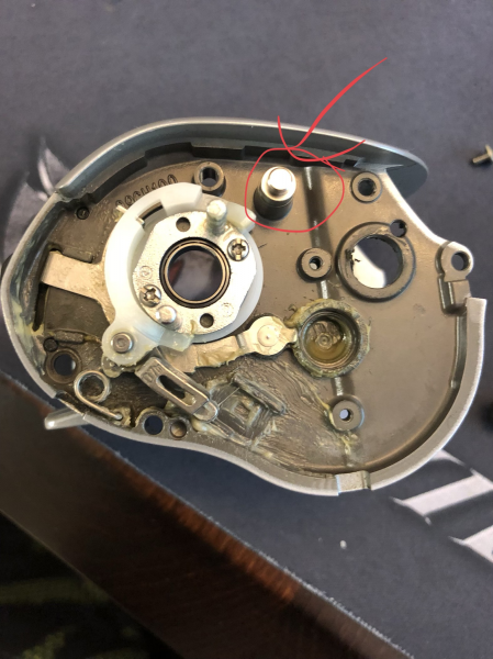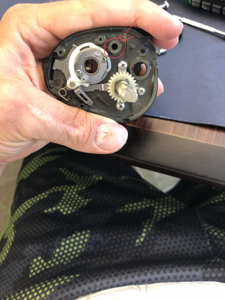 I was cleaning my Curado 200E7 and noticed that it didn't have an anti-reverse pawl...so then I noticed that it didn't have the post that it sits on.  I looked at the schematic and noticed it didn't have a part number for it. I saw the anti-reverse pawl (BNT2404) but not the post.  First pic is of a Chronarch with that post/piece and second is the Curado with the missing piece/part.  If anyone has any info on the part I'd appreciate it!