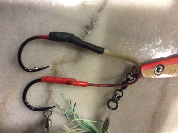 I was getting ready to tie some double hook rigs, and was just going to snell heavy braid to each hook and shrink wrap the snell. Do you think your method is stronger?