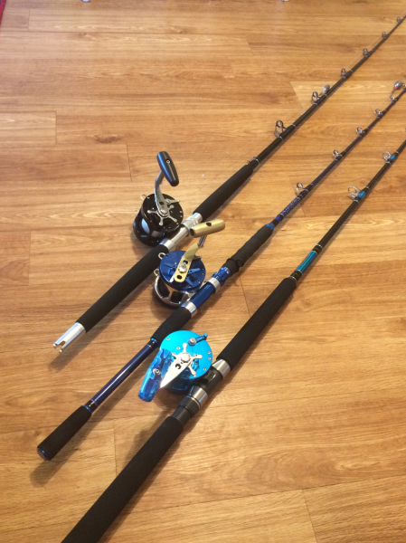 1. black accurate narrow setup with SS gears and a Kolekar grip from Alan, sitting on a custom 30lb Biscayne Rod