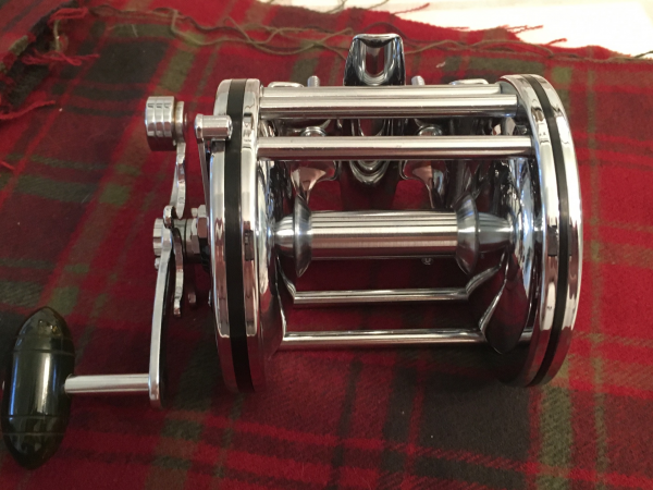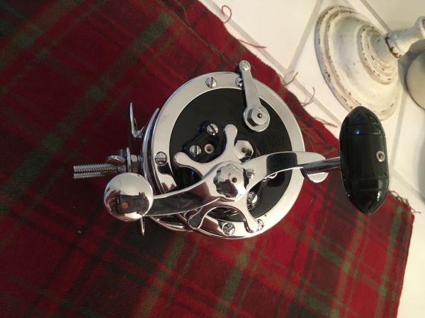 The reel is a Penn Senator 3/0, unused, non-numbered parts, with a great old Moss Green crank knob —