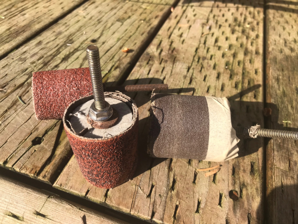 The grip shown is hypalon and it can be sanded into this shape quite easily using an arbor drum sander, as shown is a couple ho made ones, using scrap grinding belt pieces.