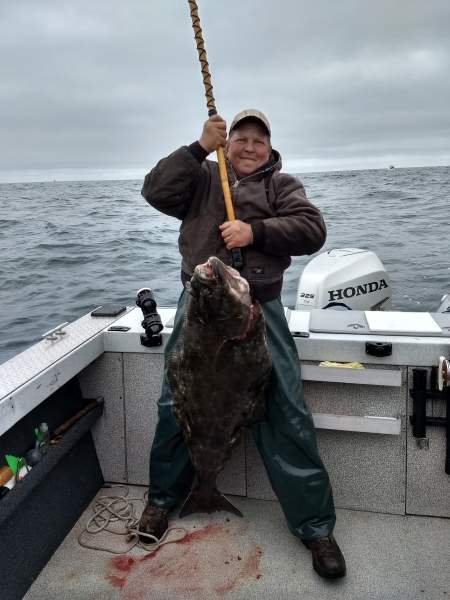 It started of well with a 38" and a 34" halibut in the boat in the first 45 min.  The next fish, 36" came an hour later than 3hours of soaking bait when we tagged the boat out with a 48" fish.