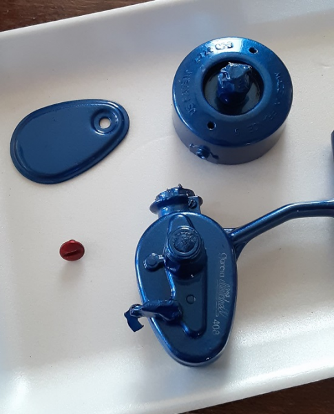 I picked up this 408 at a reasonable price. I'm not into patina, so I painted it. I know it's not original color. And the lettering was very thin and shallow. But it's my one of a kind to be fished.