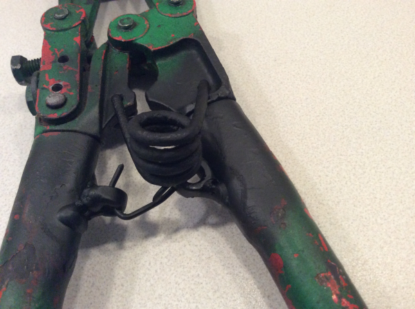 A hex nut was welded on each handle with a sst rod for the keeper.  It's out of the way and does not seem to interfere when crimping.