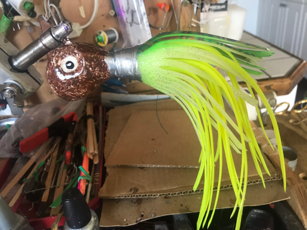 Good things take time.  Finally a jig head about 20 oz got finished.  I'm hoping for a good fish and not a rock.   U can't buy anything like this that I'm aware of.  With a good mold making another is quite possible.