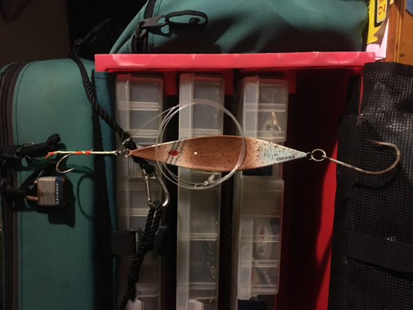 So on the first night, with nothing in the bag, I decided to try a Tady slow pitch jig rigged on #135 leader, 80 main, tld30II w/tib frame Calstar 6455xh. Crank, drop, crank, drop, crank drop. Finally on the wind my rod loaded up! Just keep winding! Up and down the rail I go managing to keep out of tangles for the most part. I think it was the 98 pounder boated here. The pressure is off! (This is the fish that got me removed from the kite rotation).