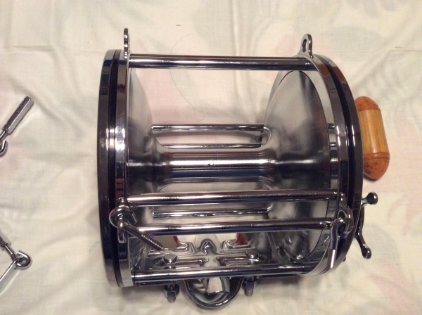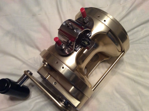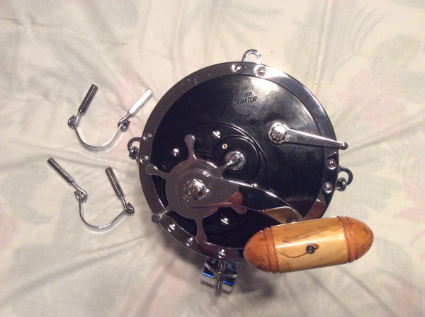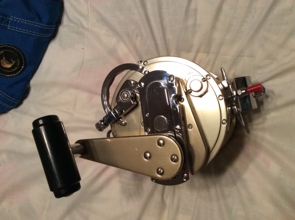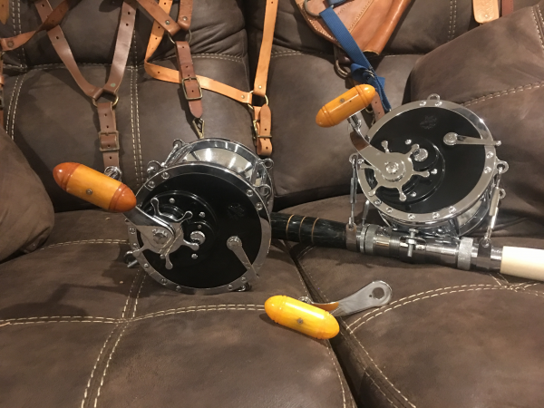 Folks, I have had the good fortune of acquiring a few new toys in the past month. I also thought that y'all might enjoy seeing my new toys. I had a gentleman bring to me a VomHofe to "show" me. Not for sale, just to show. He left without it... It turned out to be a 722, 12/0 Commander Ross! He should have known not to bring it to "show" it to me! The Commander is currently undergoing a cleaning transformation. I then had a gentleman contact me to consider purchasing a 16/0 Senator and a 12/0, 2 speed Fin-Nor. I was interested until I saw the photos!!! Then it went to, "how soon can you get here"! After I purchased them both, I put a call into the Penn Guru, Mr. Michael Cacioppo. Mike informed me that the 16/0 was from the late 50's (58ish) and he had only ever seen 1 other 16/0 with the amber colored torpedo shaped handle, which was on the "Jaws" reel and that handle had been special ordered! He said that the color was very rare! Got my blood going! I'm just going on what I have been told but I will admit that I have never seen that color on a 16/0 torpedo handle before. As for the Fin-Nor,, she's just beautiful! The presentation box is rare to begin with. The warranty and booklets are printed in Japanese as well as the back of the owners metal card. I have to believe that this was a special consideration from Fin-Nor for the new owner.  The Fin-Nor came from Figi and the Senator hails from Australia. Both reels are as perfect as you'll ever find. I guess I won't ask for anything for Christmas! Hope y'all enjoy the pictures.
