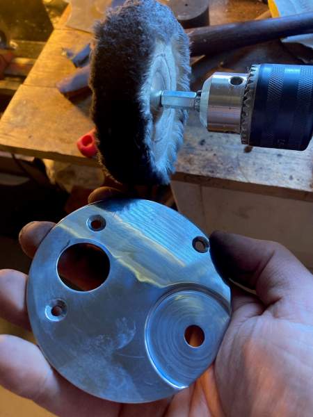 Began the polishing process mounting the new plate on the mini-lathe at home
