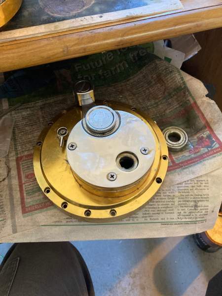 The bearings were not a problem, and could be sourced within Australia. The ratchet assembly and bridge plates were a different matter. Mystic 's still carry most of the parts needed except for the outer preset plate. A bit of a look around on the web, and the only place I could source an original plate from, wanted over $100USD for the one part alone! I decided that seeing as my current job allowed me access to a decent lathe, I would take on making this piece myself from a piece of 5mm 316SS plate I had leftover from the Senator and jigmaster projects. Tom Hryniuk was kind enough to act as a go between for obtaining the parts required from Mystic's. So it seemed a new lease on life was possible for this old beast.