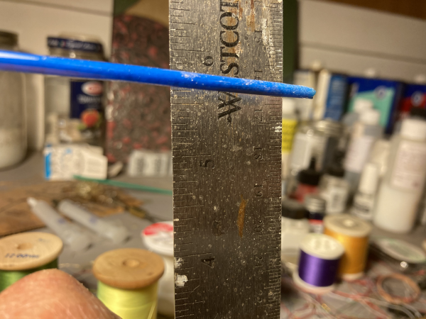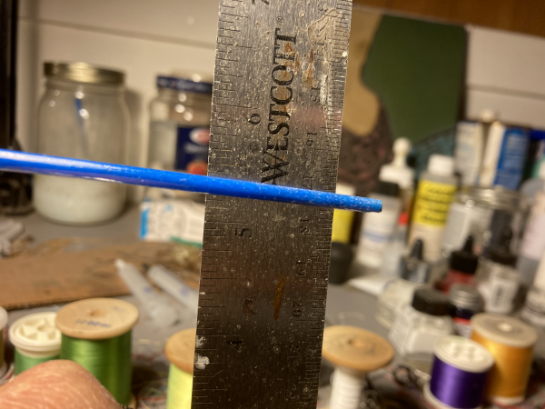 I pick a blank out of the pile to see if I could get a decent picture of what I was refer to.  Bear in mind I pretty much only build 2 brand of blanks so others might be different. I put it on the lathe to check and the small dip was about 3/8" which doesn't sound like much but would be huge if the guides were not lined up on that axis. Built this is an expensive rod that I could never sell if it doesn't look straight