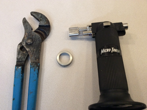 you can't heat it.  there are plastic parts underneath.  the metal parts, #110B and #110C, are about $25 for the set if you have to replace them.  i mangled mine up a little but i'm going to leave them as is.  a thinner strap wrench is the ticket.  mine was too thick.