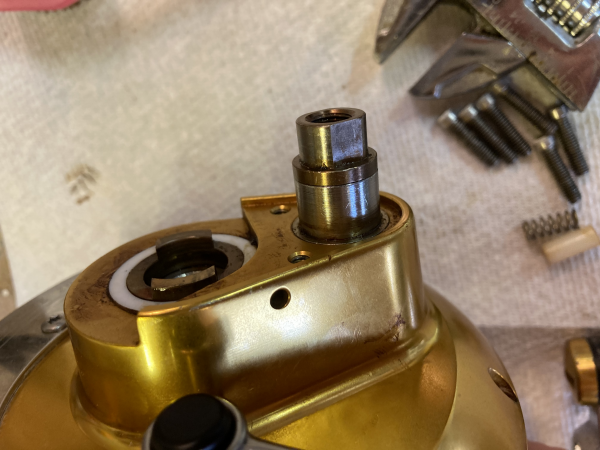 Attached photo shows the silver bridge bushing that's blocking the bronze gear stud.