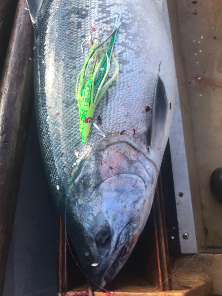 As our coho salmon run is slowing down it was decided to try to troll up, just one more.🤷‍♂️