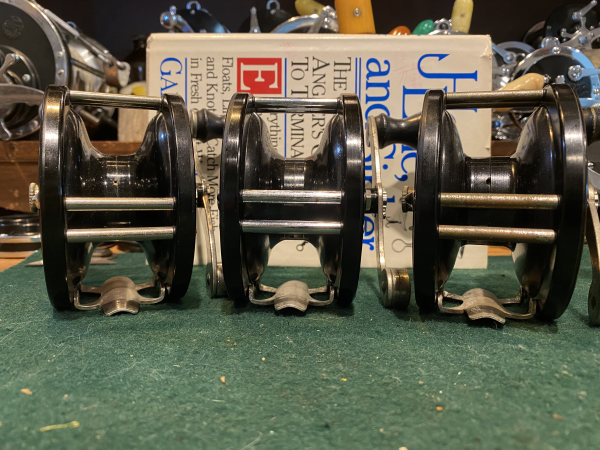 I should add that the middle reel shows the difference between original nickel silver and chrome.  It's clear that the posts came from a later Mariner.