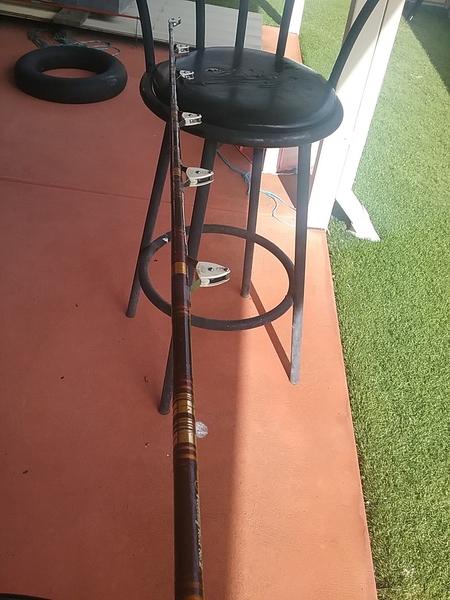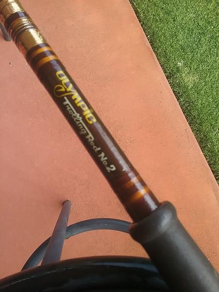 Thanks Mike, you must have place the pics on the forum as you fell in the door, the full pic of the rod, it looks like the first roller is dammaged, it is actually some bird #### on the concrete, the bloke I brought it from, wanted AU$50 for it, he also had a split cane rod for $30, so I offered him $65 for the two, & he said okay, So $35 it is, as I said the Senator 16/0 fit on it, but I am not sure if its strong enough for that, all the rollers work good, I could not find any detains on the Olympic web site. cheers Don.