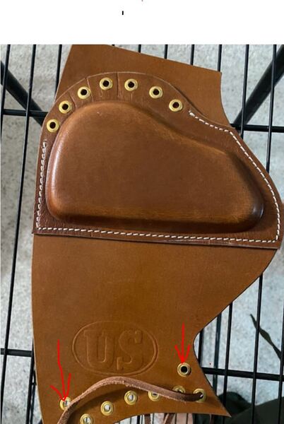 3) The two extra eyelets are there for screws. These are brass screws that go into your stock near the bottom on the left side. This probably helps with the stiffness when attaching and lacing, and it prevents the pad from slipping during recoil. I know I would have a hard time drilling it if it wasn't already drilled.