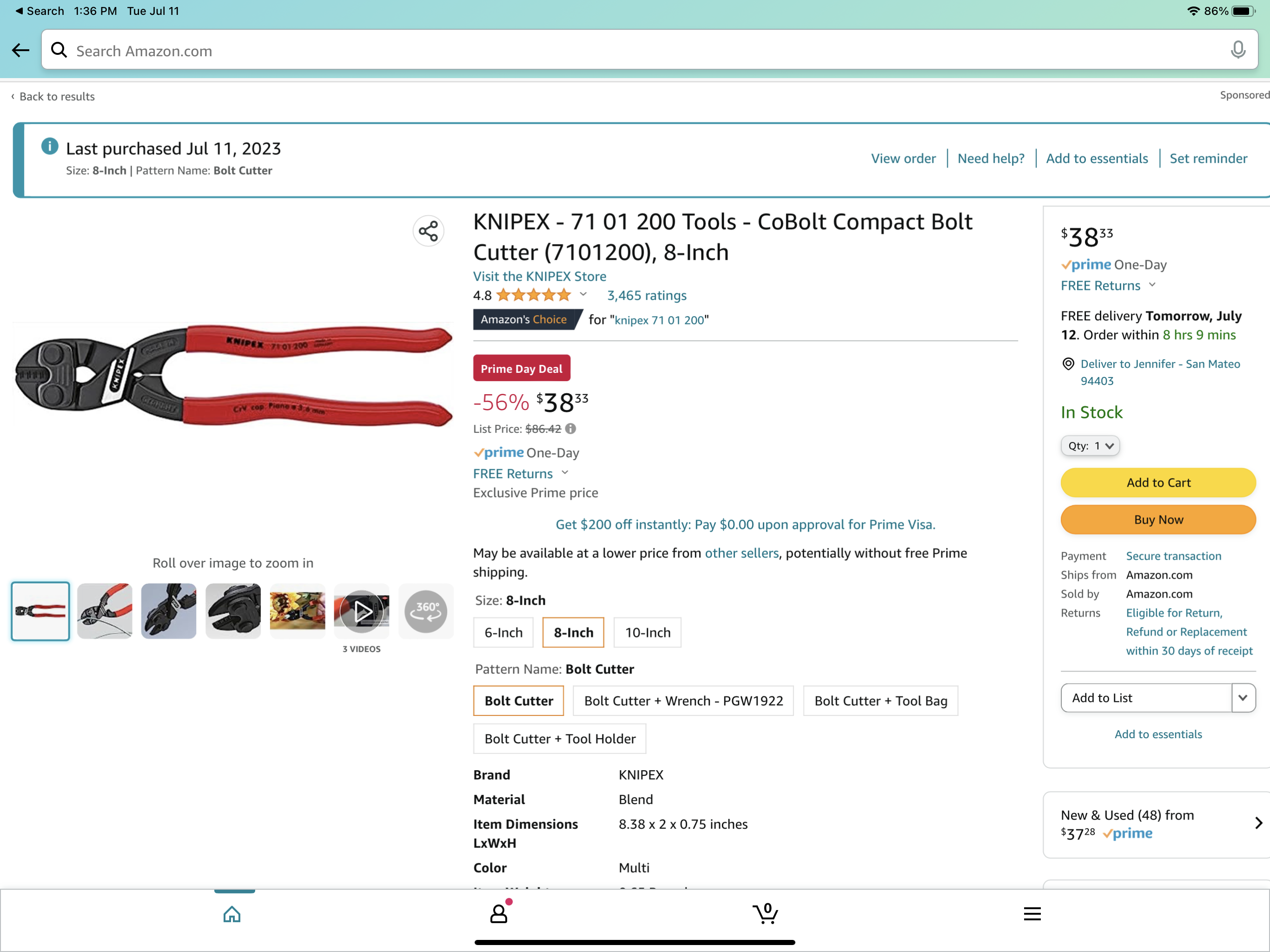 Knipex 71 01 200 Bolt Cutter ON SALE AMAZON PRIME July 11-12